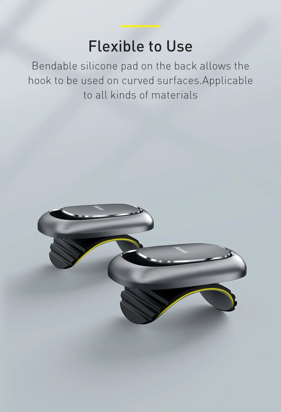 Bendable silicone pad on the back allows the hook to be used on curved surfaces.Applicable to all kinds of materials