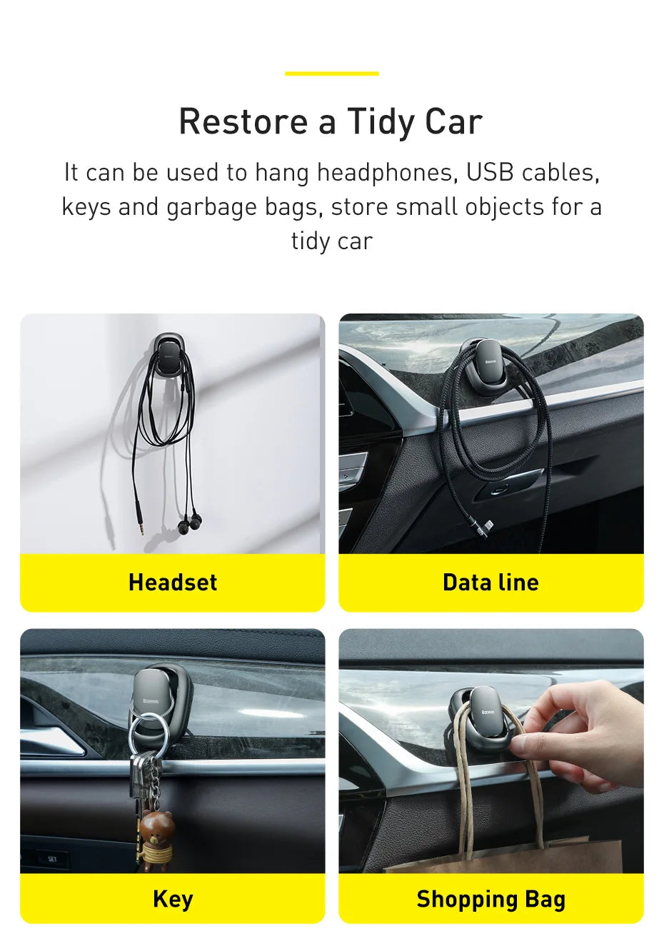 It can be used to hang, headphones, USB cables, keys and garbage bags Store small objects for a tidy car
