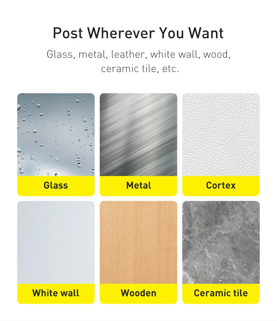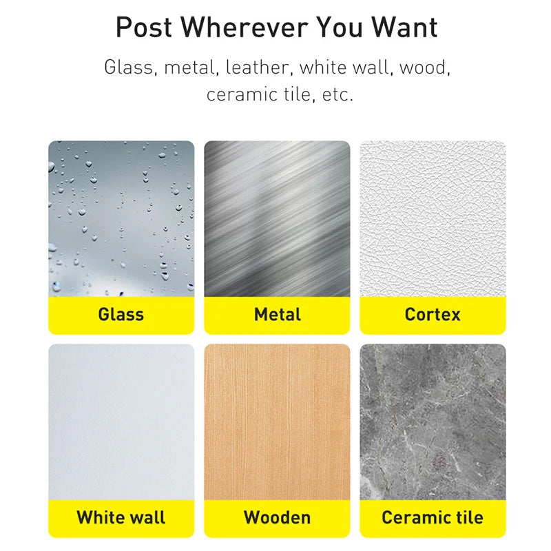 It can post glass,metal,leather,white wall,wood,ceramic tile and so on