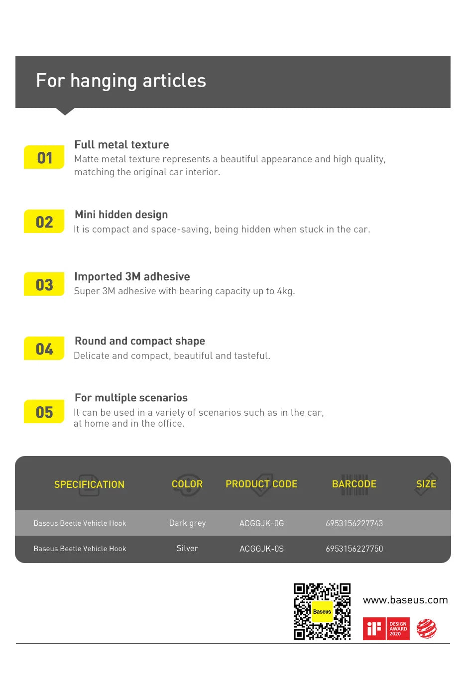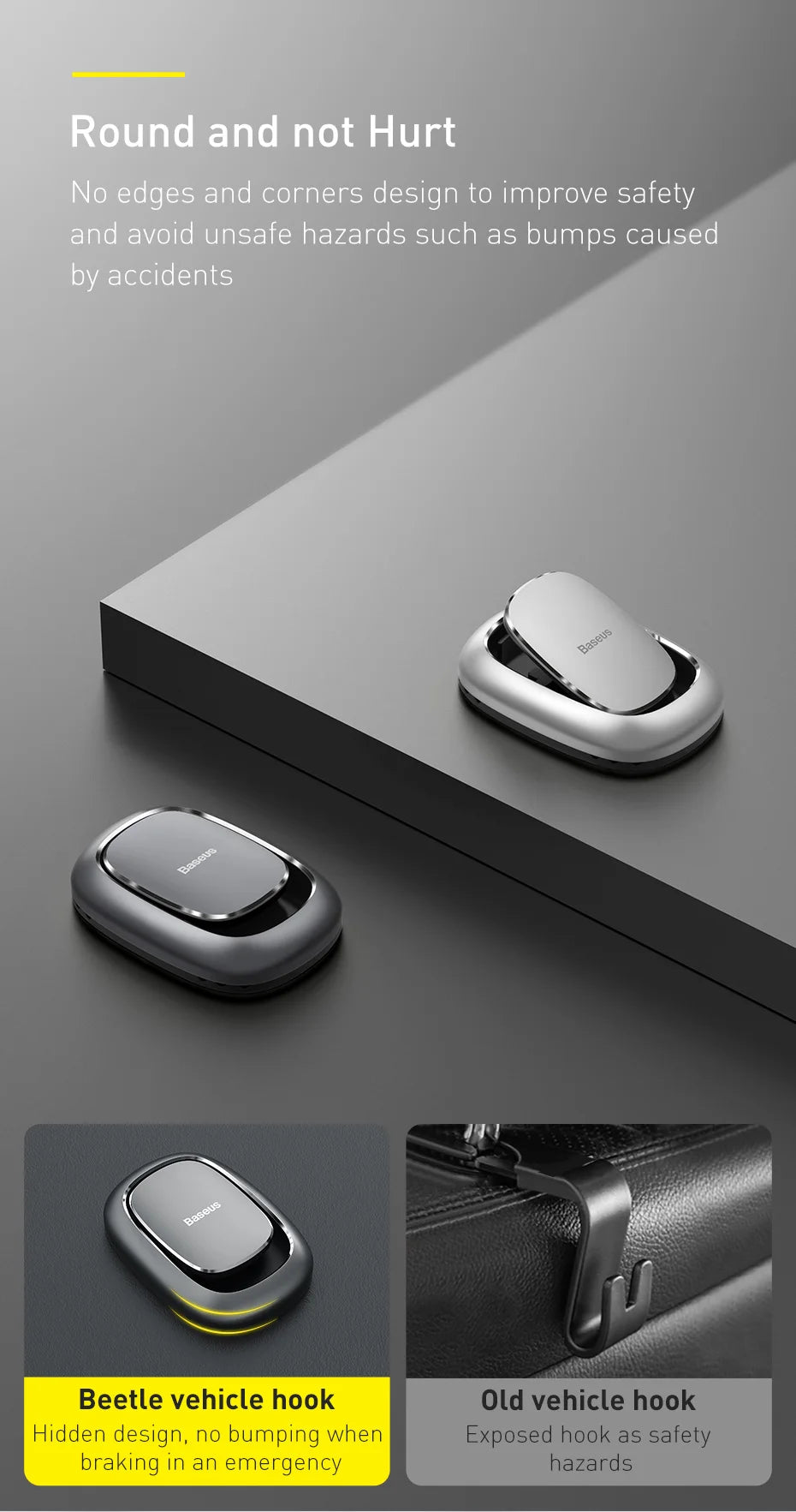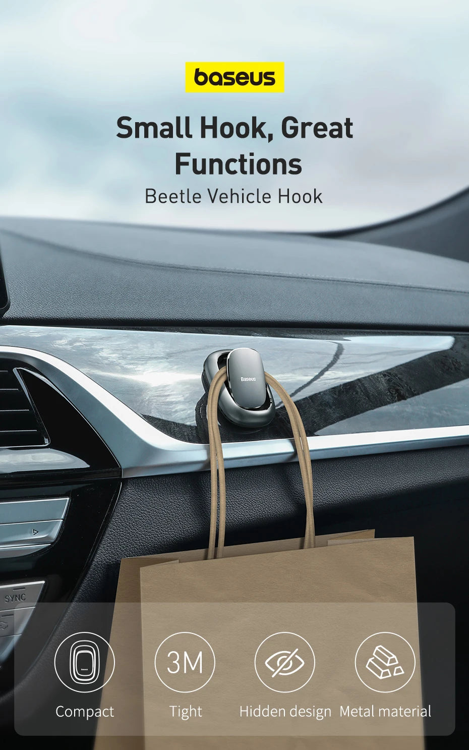 Hidden design, press to open the hook Match well with the car interior