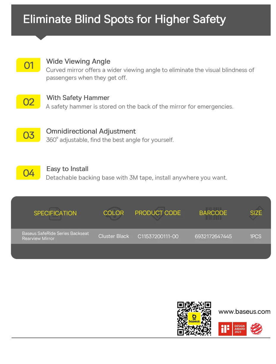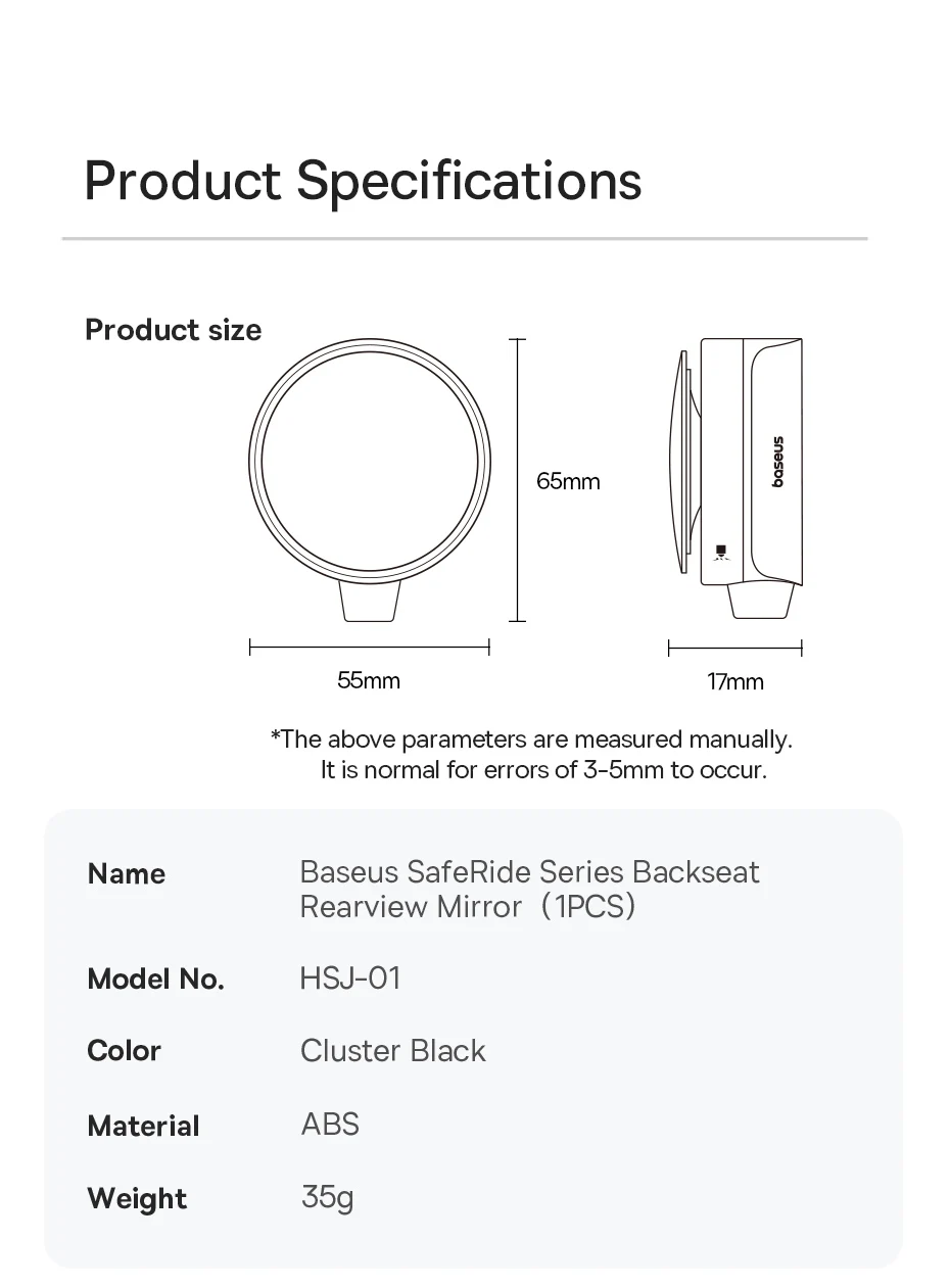 Model Name: Baseus SafeRide Series Backseat Rearview Mirror ( 1PCS)