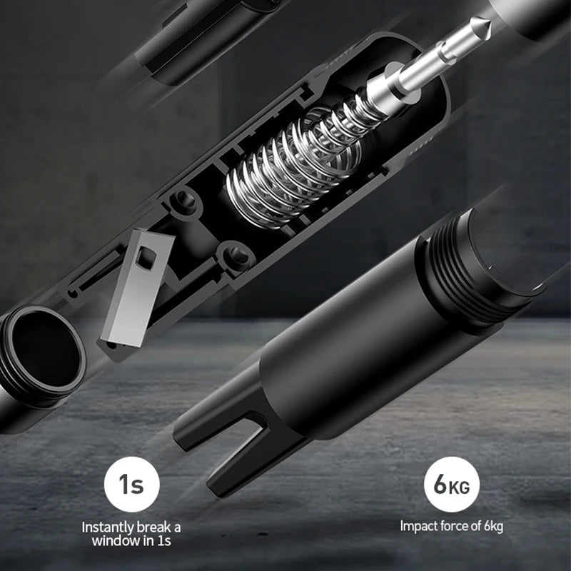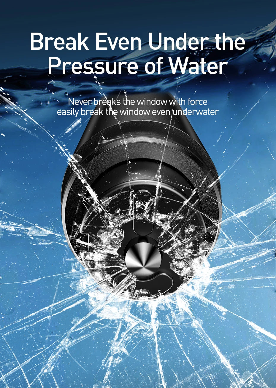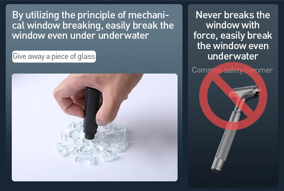 By utilizing the principle of mechanical window breaking, easily break the window even under underwater.Built-in stainless steel cutter helps you quickly and easily cut off safety belt in case of a danger.