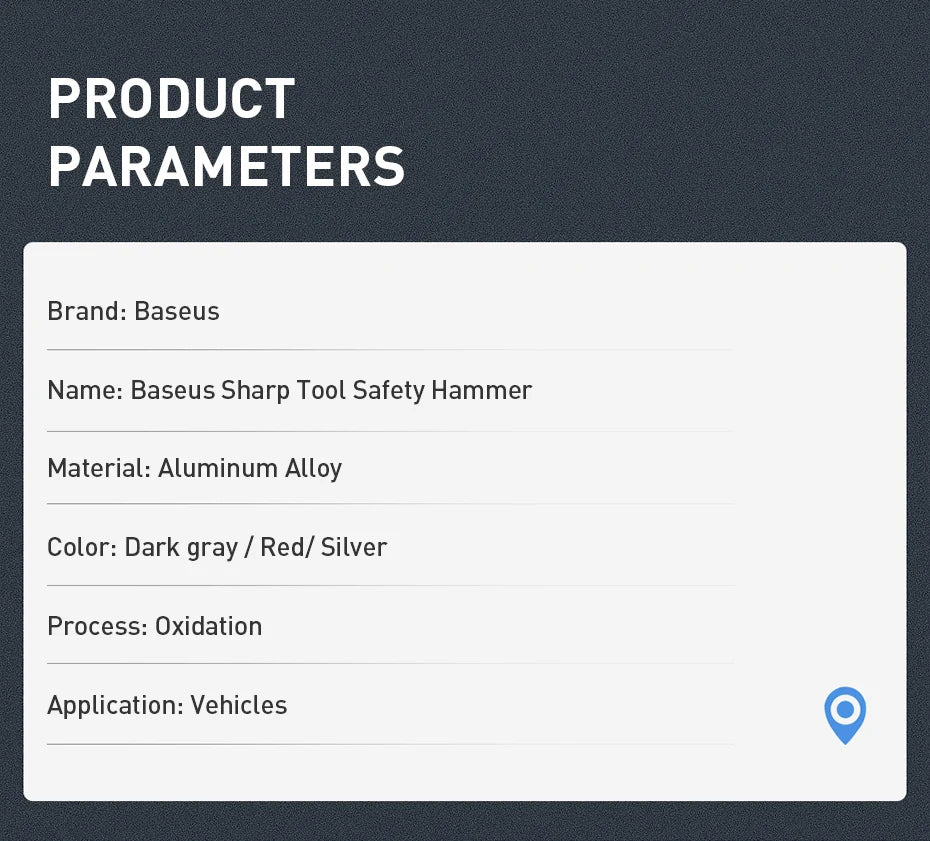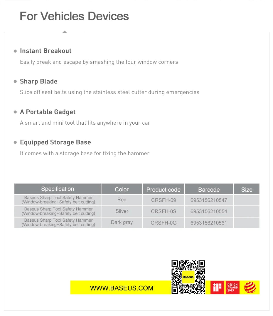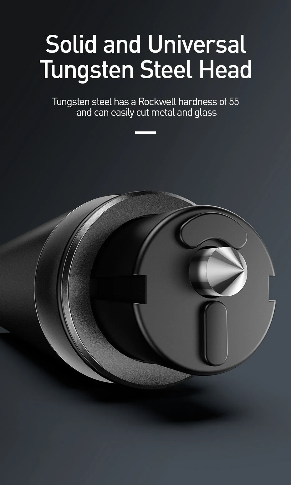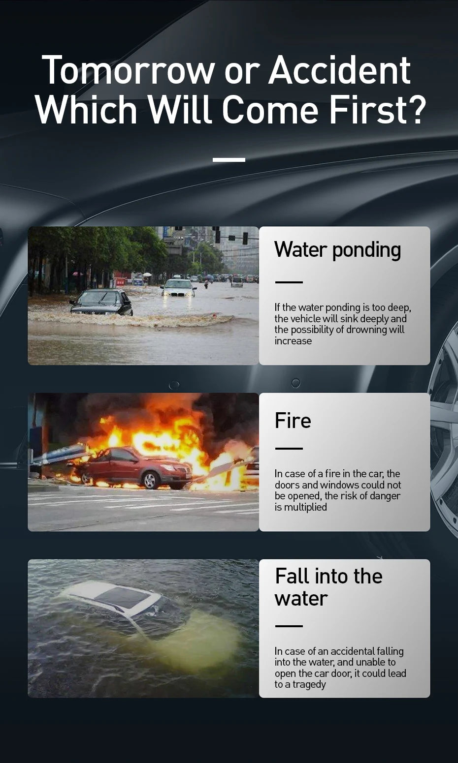 Special safety hammer for breaking windows, always get prepared for danger.Break windows of the whole car and Cut the jammed safety belt.